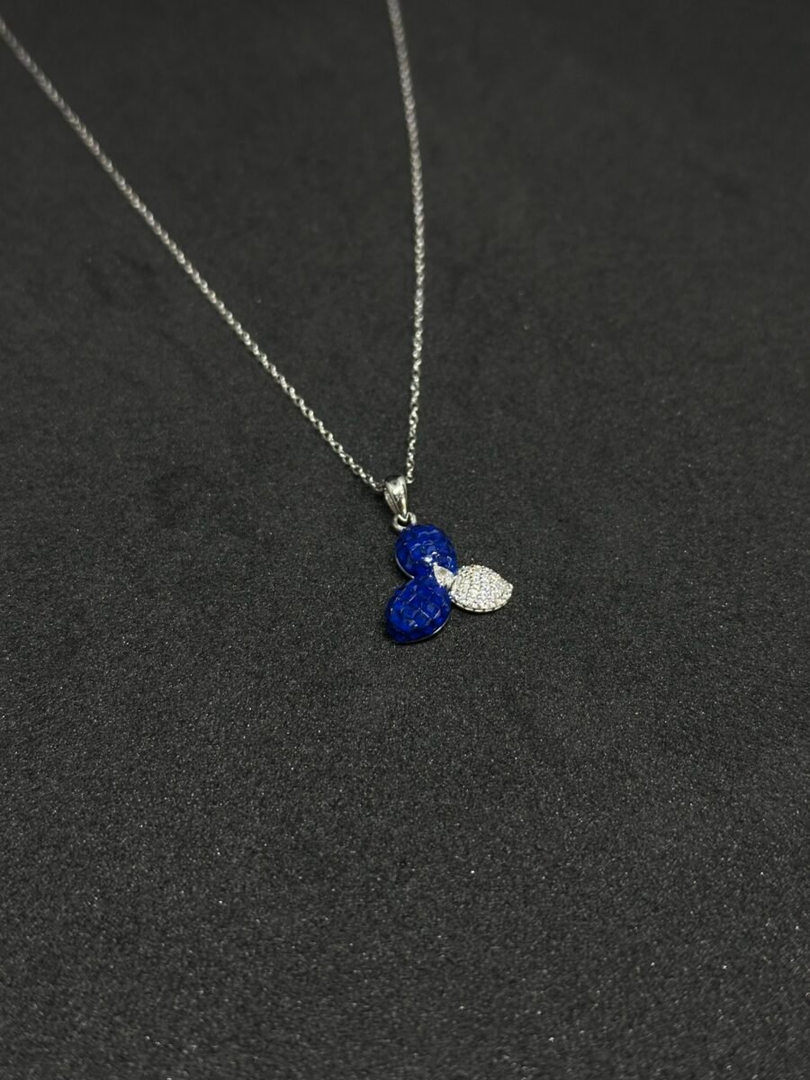 Crafted with precision, the chain gracefully balances delicacy and durability, ensuring it feels lightweight yet secure around your neck. The pendant, adorned with sparkling blue stones, reflects light beautifully, creating an eye-catching shimmer from every angle. This is the necklace that elevates your look effortlessly.