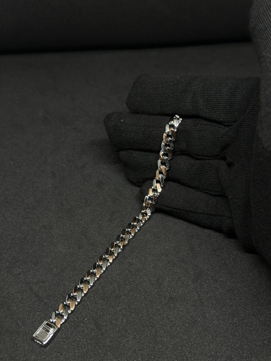 Our Cuban bracelet is made from high-quality materials, ensuring long-lasting durability paired with its luxurious appearance. The intricate chain design is not only robust and reliable but also engineered to maintain its shine and form even with daily wear. Meticulously crafted, each link reflects attention to detail and is polished to perfection, making this accessory a standout addition to your wardrobe.