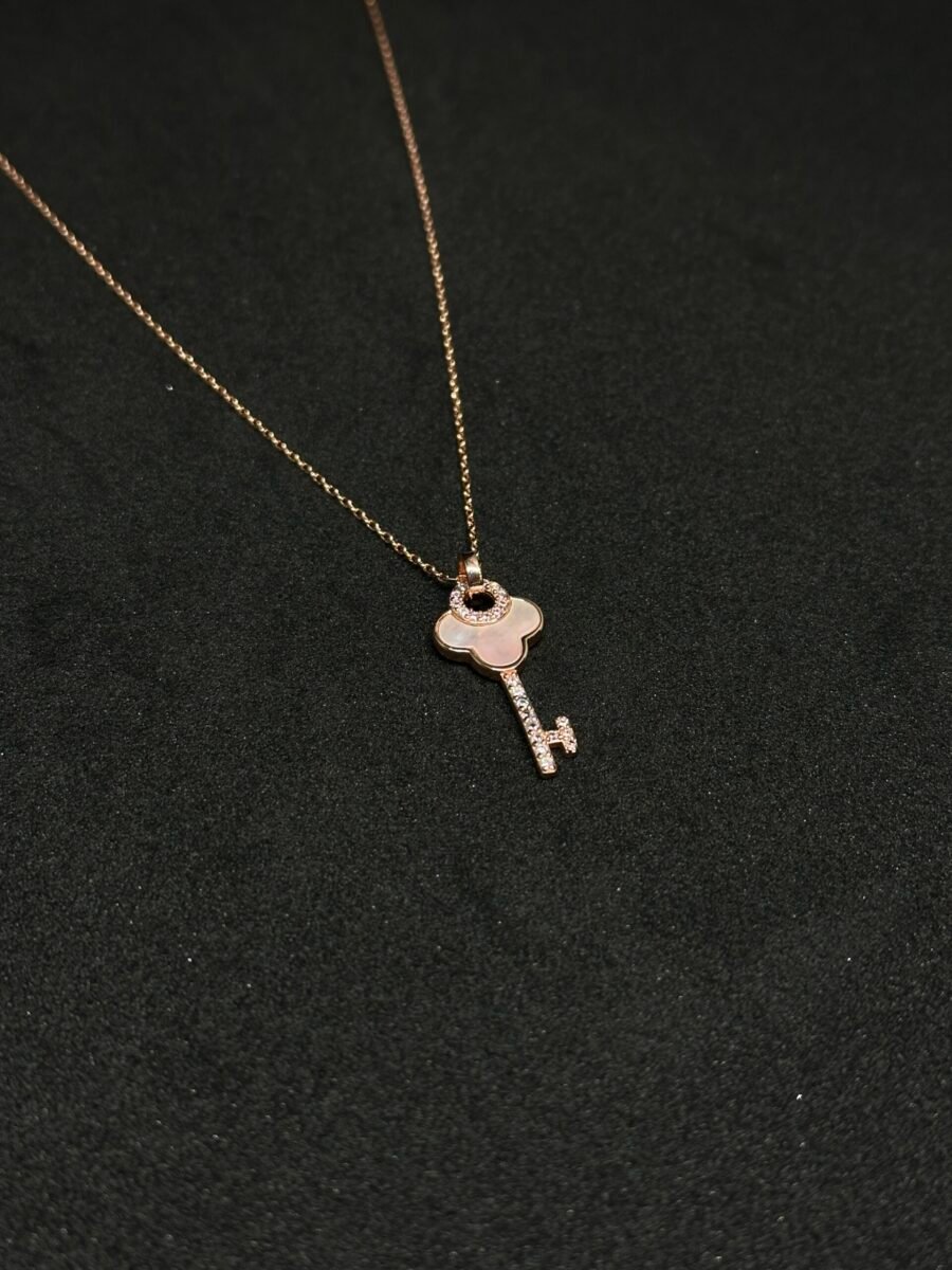 This key-shaped chain pendant, crafted in captivating rose silver, is the perfect blend of beauty and sophistication. Designed exclusively for women, this pendant serves as a timeless accessory that effortlessly enhances any outfit, whether it’s casual, formal, or somewhere in between. The charm lies in its delicate design that symbolizes mystery and unlocking possibilities—a meaningful addition to your jewelry collection.